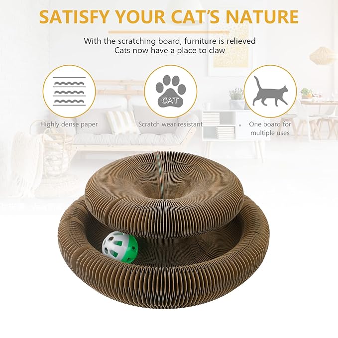 This is such a clever design. My two cats actually take turns playing with it. It's sturdy, doesn’t tip over, and the honeycomb structure really holds up to daily scratching. Just wish it came in more colors.